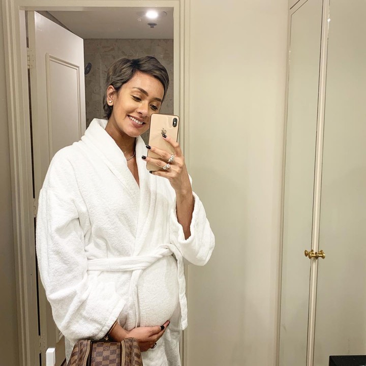 Penampilan berkelas selalu diusung Kimmy. Sambil memakai bathrobe, ia bergaya di depan cermin. Tetep keren sambil pamer perut buncitnya.