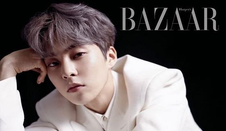 Xiumin yang biasa tampil imut kini mengejutkan penggemar dengan penampilan maskulinnya di majalah Harpers Bazaar Korea.