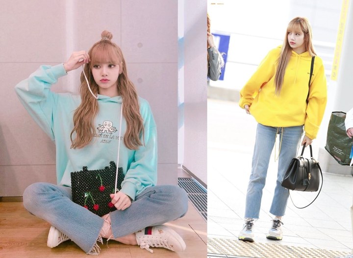 Style Lisa selanjutnya ini juga bisa kalian jadikan inspirasi. Kenakan hoodie dengan warna yang terang sehingga membuat kalian tak begitu terlihat tomboi.