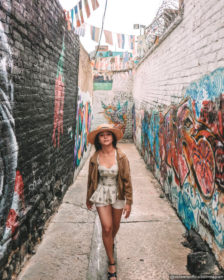 Bukan Nikita namanya jika tak bisa tampil seksi saat traveling. Ketika berkunjung ke Bogota di Kolombia, ia memilih tampilan sederhana. Mengenakan celana mini dan jaket, Nikita melengkapi fesyennya dengan topi pantai.