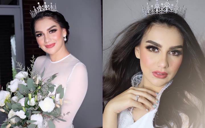 Irish mengenakan gaun putih rancangan Asky Febrianti. Gaun tersebut tampak tidak berlebihan dengan detail yang manis. Penampilan Irish bak princess Disney, ya.