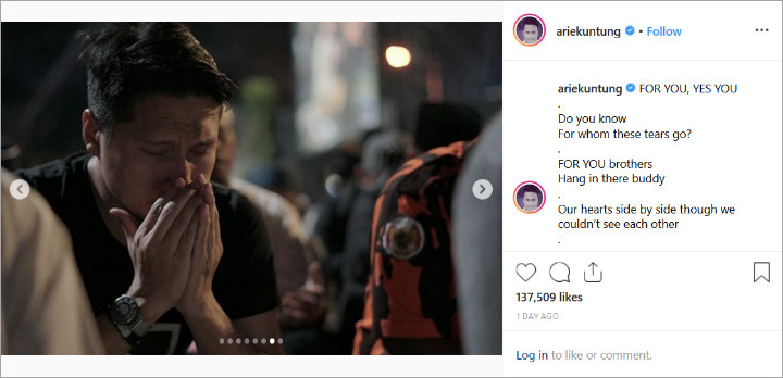 Bikin mewek, Arie Untung bagikan potret aktor-aktor tampan menangis bertepatan dengan Aksi 22 Mei berlangsung.