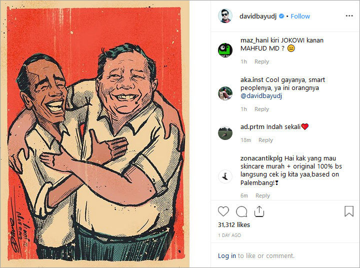Vokalis band David Naif bikin terharu dengan gambar Joko Widodo dan Prabowo Subianto berpelukan. Adem, ya!