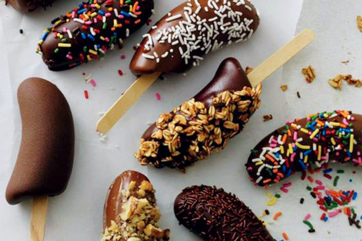 Masukkan pisang yang sudah didinginkan dalam lelehan cokelat hingga merata, lalu beri tambahan topping favoritmu. Diamkan di freezer, lalu santap!