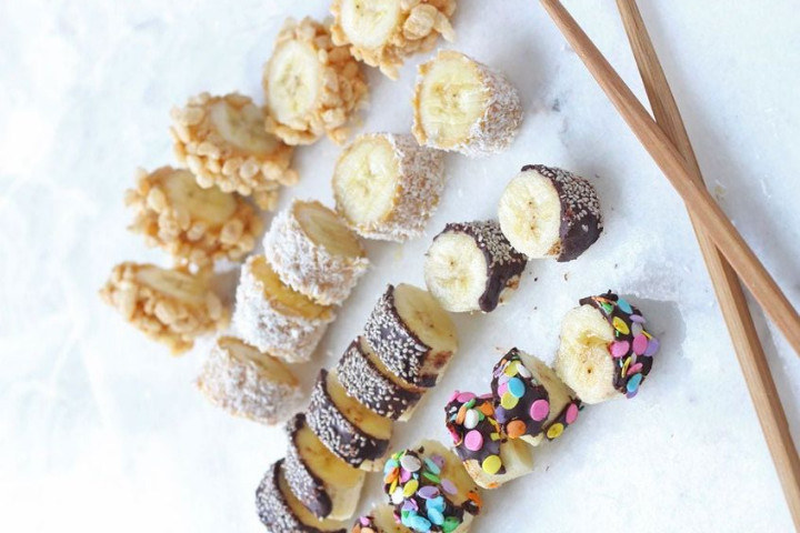Menu pisang berselimut cokelat yang satu ini akan sangat disukai oleh anak-anak. Bahan yang diperlukan juga mudah ditemui di supermarket terdekat, yakni cokelat batang dan pisang.
