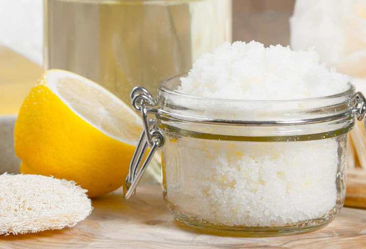 Untuk membuatnya, kalian membutuhkan air perasan lemon dan minyak zaitun. Campurkan kedua bahan tersebut, lalu masukkan gula pasir secukupnya hingga mengental. Masukkan scrub dalam botol higenis sehingga dapat kalian gunakan berkali-kali.
