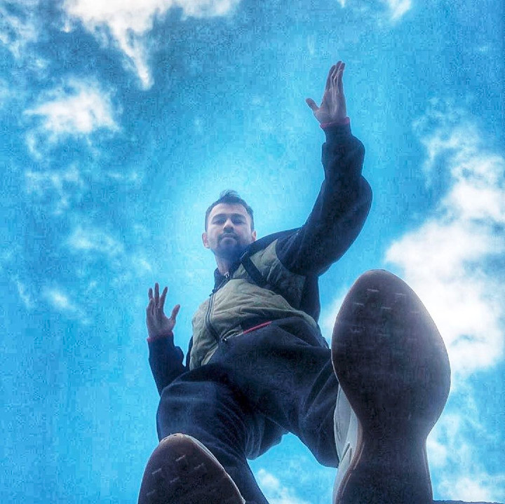 Raffi tak mau kalah dengan sang istri dan Rafathar dong. Raffi pamer pose nyentrik di bawah langit yang lagi cerah, nih. Cakep!