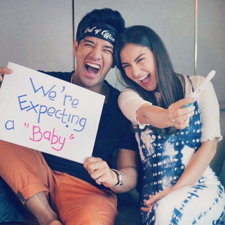 "Coming soon baby," tulis pesinetron cantik itu di caption potret maternity keduanya.