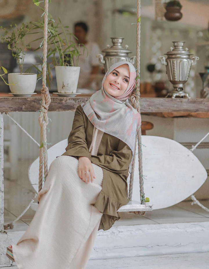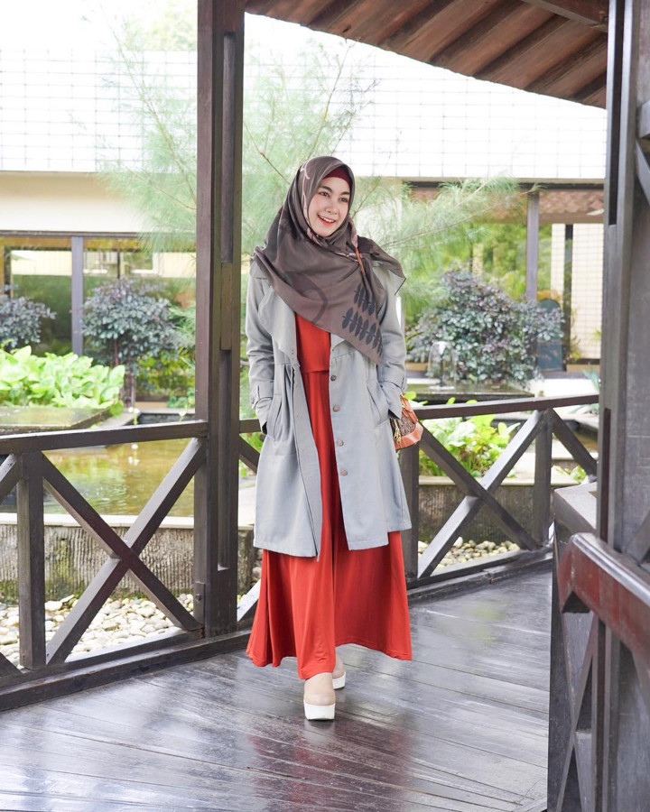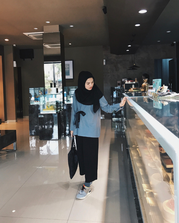 Istri Ricky Harun, Herfiza Novianti juga bakal jadi panutanmu untuk tampil syar'i dan tak kelihatan tua, nih. Kamu cukup kenakan atasan oversize dengan warna favoritmu sehingga lekuk badan tak akan tampak. Padukan dengan bawahan warna gelap, rok atau celana tak masalah. Kenakan kaos kaki senada dengan atasanmu untuk menutupi aurat semakin sempurna. Sepatu sport juga akan melengkapi tampilan syar'i nan simpelmu.