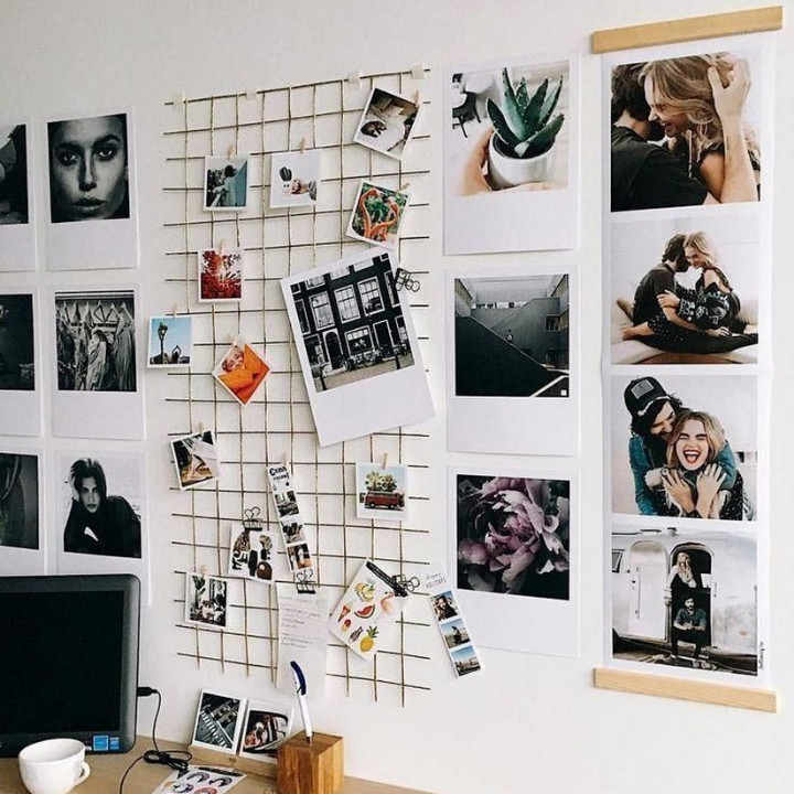 Nah, foto-foto cetak yang kamu miliki juga bisa lho membuat kamarmu menjadi lebih estetik. Bahkan kamu tidak membutuhkan banyak uang untuk membuat gantungan foto di kamar. Kamu cukup menyiapkan tali dan paku saja.
