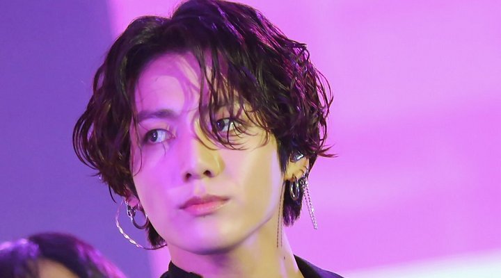 Tampak dari jepretan penonton, maknae grup BTS ini muncul dengan gaya rambut gondrong dan keriting. Terlihat poni panjang Jungkook hampir menutupi matanya.
