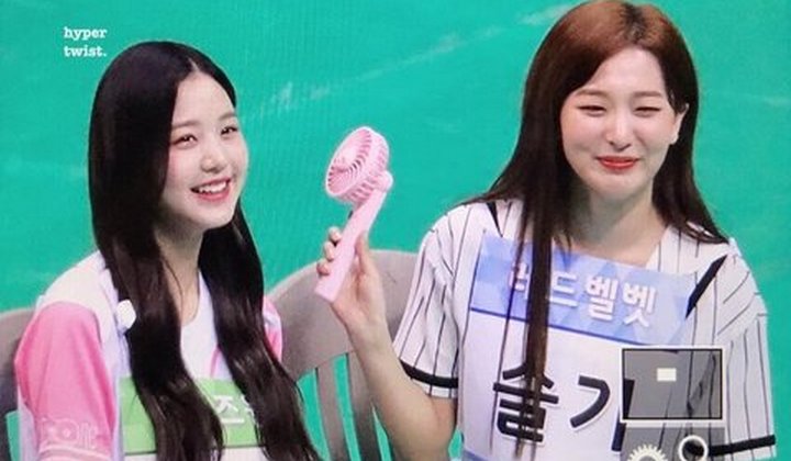 Tak hanya itu, Seulgi yang membawa kipas angin kecil itu juga tak sungkan membagi udara segar pada Jang Wooyoung. Tak pelak jika interaksi keduanya ini sukses membuat netter terpukau dan terutama memuji Wendy sebagai senior yang baik.