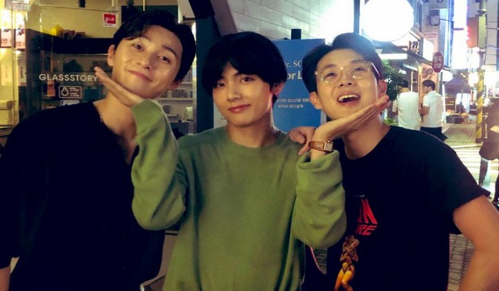 Menghabiskan waktu liburan yang diberikan oleh Big Hit untuk para member BTS, V pun memanfaatkannya dengan pergi bersama dua sahabatnya yakni Park Seo Joon dan Choi Woo Shik .