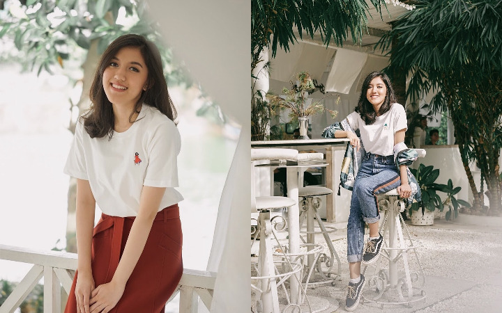 Kaos warna putih menjadi outfit paling wajib dimiliki. Mudah dikombinasikan dengan berbagai model menjadi alasannya. Ify lebih cocok gaya tomboy atau feminin, nih?