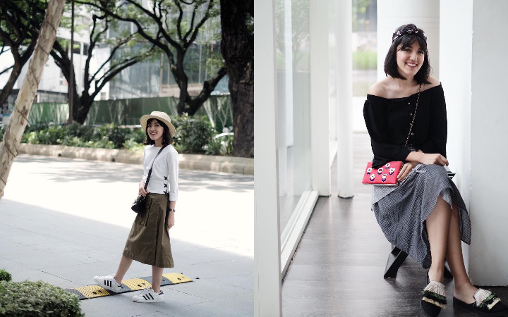 Buat kamu yang cukup berani dan nyaman memakai atasan out of shoulder, Ify juga punya tips! Pakai rok jadi kuncinya, dijamin cantik!