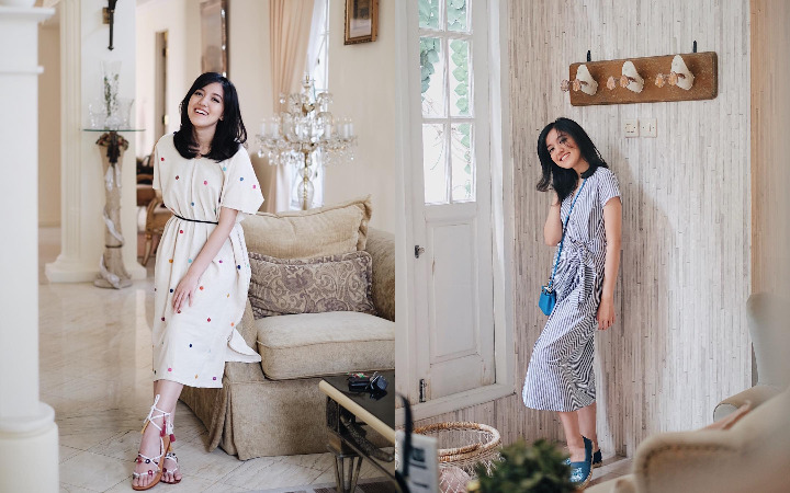 Siapa punya banyak gaun sederhana? Jarang dipakai karena merasa tidak sopan? Cukup tiru Ify yang jadikan kaos polos dalaman gaun. Manis!