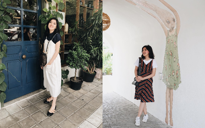 Pakai gaun untuk main? Kenapa nggak? Ify beri contoh 2 gaya dengan midi dress nih. Dikombinasikan dengan flat shoes atau sepatu sport tetap oke!