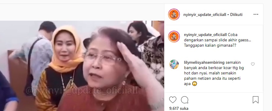 "Nenek braninya di belakang doang, pas di gertak nyai elu kek keong sawah," sambung akun @ani****90. "Kemaren waktu ddpan nyai, DIEM BAE. Sekarang ngga ada nyai, katanya SABAR LUAR BIASA. Orang kalo makin berumur makin sensian," timpal akun @*****xiao. "Ibu coba ibu NGACA kenapa sampe ibu dihujat netizen, jangan bawa2 hati nurani bu, ibu aja gak ada hati nurani nya sama sekali bu !!! Saya doain semoga ibu cepet NGACA," imbuh akun @sal****15.