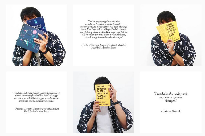 Kemudian unggah bergantian dengan foto-fotomu, deh. Feed Instagram milikmu akan menarik bak bidak catur. Bisa juga kamu model lain misalnya 1 baris full kutipan, atau model zig-zag juga bisa. Kutipan ini bisa kamu ganti dengan apa pun yang senada, lho. Tertarik?