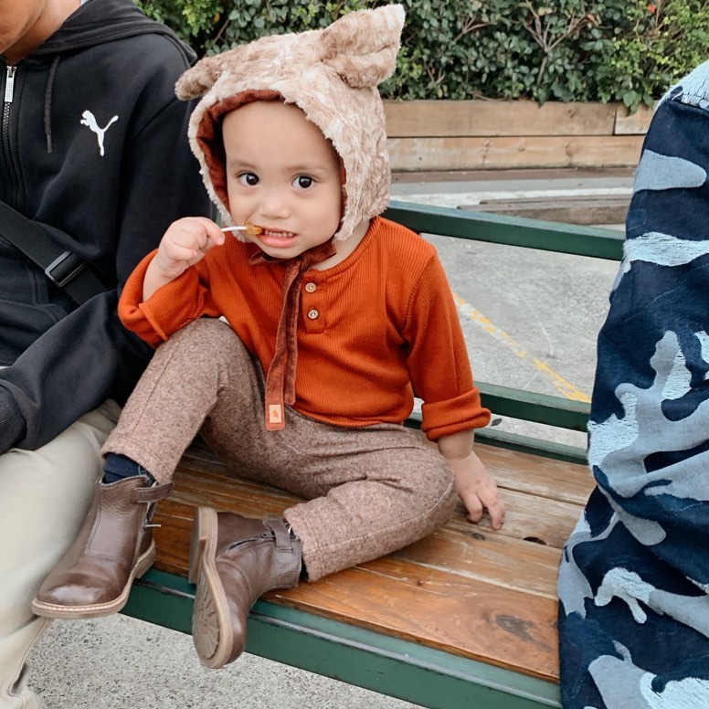 Duh, Xabiru menjelma bak boneka beruang di foto ini ya? Belum lagi pamer cengiran lucu. Gemas!