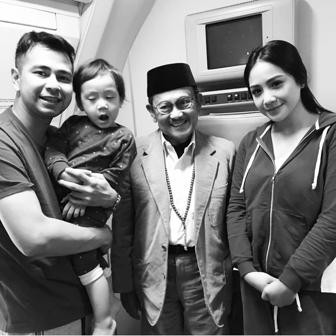 "Selamat Jalan Pak @b.jhabibie .... INNALILLAHI WA INNAILLAHI ROJIUN," tulis Raffi Ahmad dalam potret hitam putih bersama BJ Habibie, Nagita Slavina, serta Rafathar.