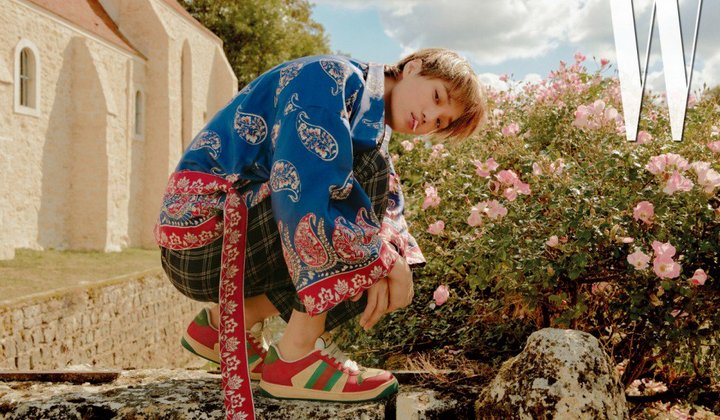 Member EXO, Kai tampil di majalah W Korea dan melakukan pemotretan di Paris dan mengenakan busana milik rumah mode ternama Gucci dari atas sampai bawah.