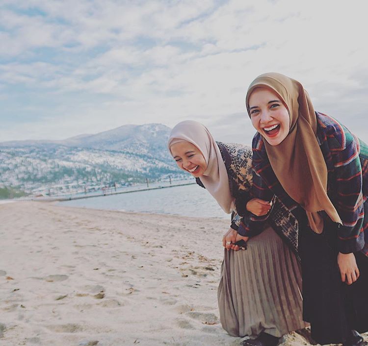 Aduh, Zaskia dan Bella memang sama-sama cantik ya. Lihat deh pipi merona karena udara dingin di tengah salju. Bak kembar, ya?