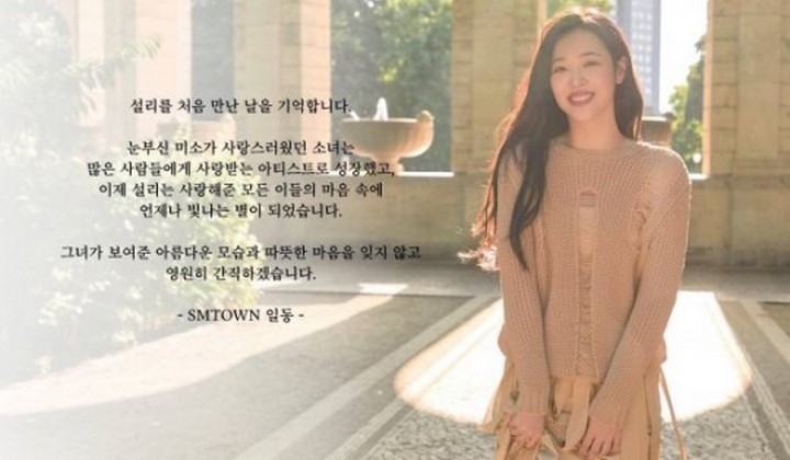SM juga menyebut sosok Sulli akan selalu dikenang. Membaca pesan menyentuh yang ditulis oleh SM ini tentu saja langsung membuat netter maupun penggemar ikut banjir air mata mengingat sosok Sulli yang memang selalu terlihat ceria meski kerap menjadi sasaran komentar jahat.