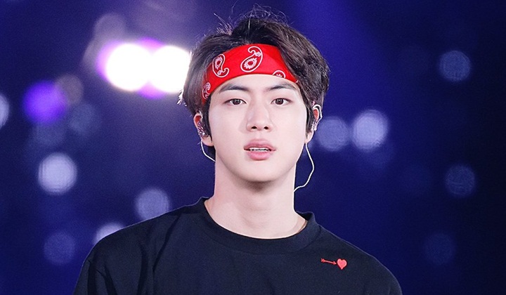 Jin terlihat menutup wajahnya dengan jaket berwarna dominan ungu. Gambar dalam jaket itu juga cukup unik karena menunjukkan karakter penjahat dalam sebuah film populer belakangan ini. Ya, menutupi wajah dengan jaket tersebut membuat idol tampan itu menyerupai karakter Joker.