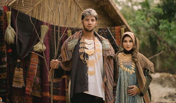 Tak jauh berbeda dengan Ammar, ia juga tampil kenakan setelan bernuansa gelap. Hanya saja di bagian jasnya terpampang sedikit nuansa merah muda yang bikin Ammar terlihat tak kalah kece.