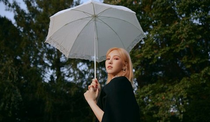 Ada juga foto yang memperlihatkan Wendy dengan blazer hitam dan sepatu heels berwarna senada dengan busananya. Idol 25 tahun itu tampak membawa sebuah payung putih transparan dan berdiri tegak di tengah sebuah tanah lapang dan menatap ke arah kamera dengan tatapan tajam.