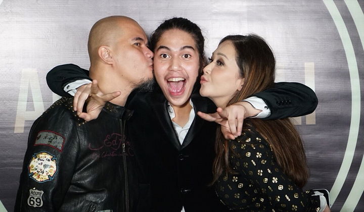 "Pertama kali ke IndonesianIdol nemenin Ayah @ahmaddhaniofficial jadi juri. Sekarang nemenin Bunda @maiaestiantyreal jadi juri. Kira2 mungkin gak mereka duduk di satu meja juri yang sama?" tulis El Rumi dalam keterangan fotonya.