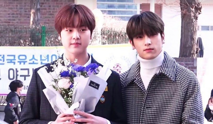 Pada Kamis (6/2), cowok kelahiran 2004 tersebut menghadiri upacara kelulusan dari Daechi Middle School, Seoul. Ternyata ia tak sendiri, di hari bahagia tersebut, hyung kesayangannya pun datang.