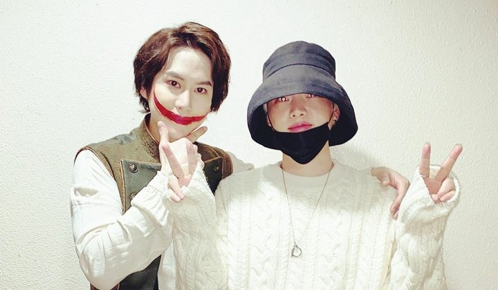 Kali ini aktor Ahn Jae Hyun ternyata tak lupa dengan temannya yang satu ini. Dengan sweater dan topi foto tersebut ia abadikan di Instagram pribadinya, Kyuhyun bahkan masih terlihat lengkap menggunakan make up.