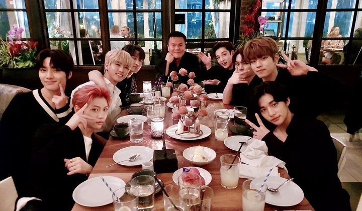 Kebersamaan tersebut dapat dilihat pada unggahan Instagram Stray Kids, Selasa (17/2). Mereka berada di sebuah restoran yang terlihat mewah, bos JYP duduk di tengah sedangkan personel Stray Kids di kanan dan kiri saling berhadapan. Dengan gaya yang santai dan tak canggung sama sekali, mereka bahkan berpose dengan bebas.