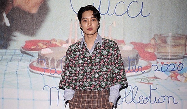 Kai membagikan tiga hasil pemotretan dalam sekali unggahan. Dari tagar yang dituliskan oleh penyanyi kelahiran 1994 itu, terlihat jika dirinya menggunakan serangkaian busana besutan merek ternama Gucci. Ia menggunakan setelan jas berwarna kuning cerah.