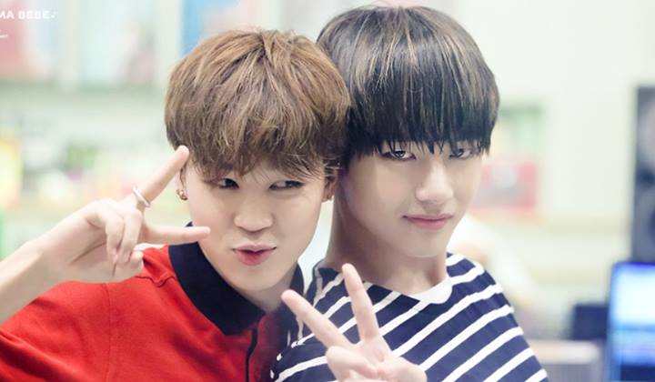 Kedua maknae tersebut nampak berjoget sambil saling menyundulkan kepalanya untuk beberapa saat. V terlihat melakukan hal itu dengan tangan kosong, sementara Jimin tengah memegang bunga.