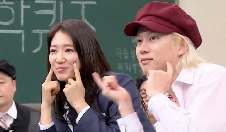Park Shin Hye dan Heechul kemudian langsung ke depan dan menirukan gerakan #AnySongChallenge yang belakangan menjadi viral itu. Keduanya tampak sudah hafal gerakan tersebut dan mengundang gelak tawa dengan tingkah lucunya.