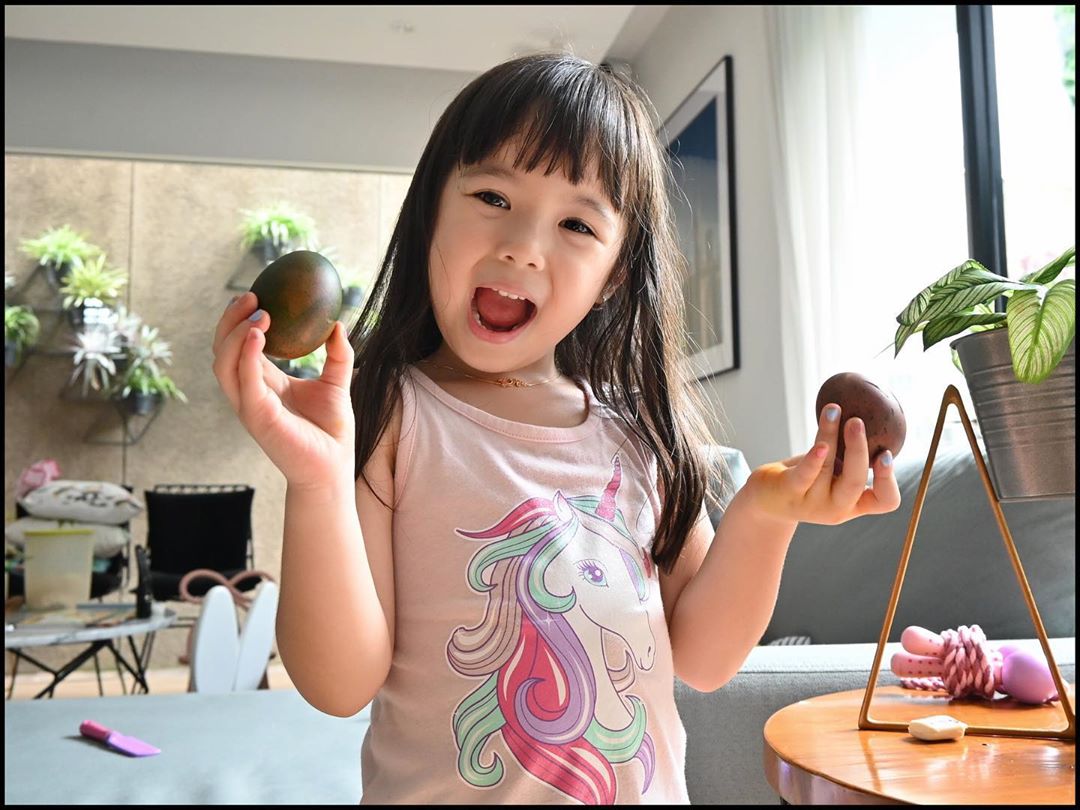 Perayaan Paskah memang identik dengan menghias telur untuk anak-anak, nih. Putri Gading Marten dan Gisella Anastasia semangat melakukannya meski hanya di rumah. Keren!