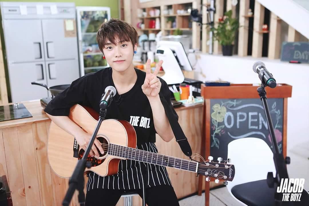 Jacob The Boyz tidak hanya mempunyai paras tampan namun juga jago bermain gitar, lho. Jacob beberapa kali menyanyi dengan diiringi main gitar. Keren!