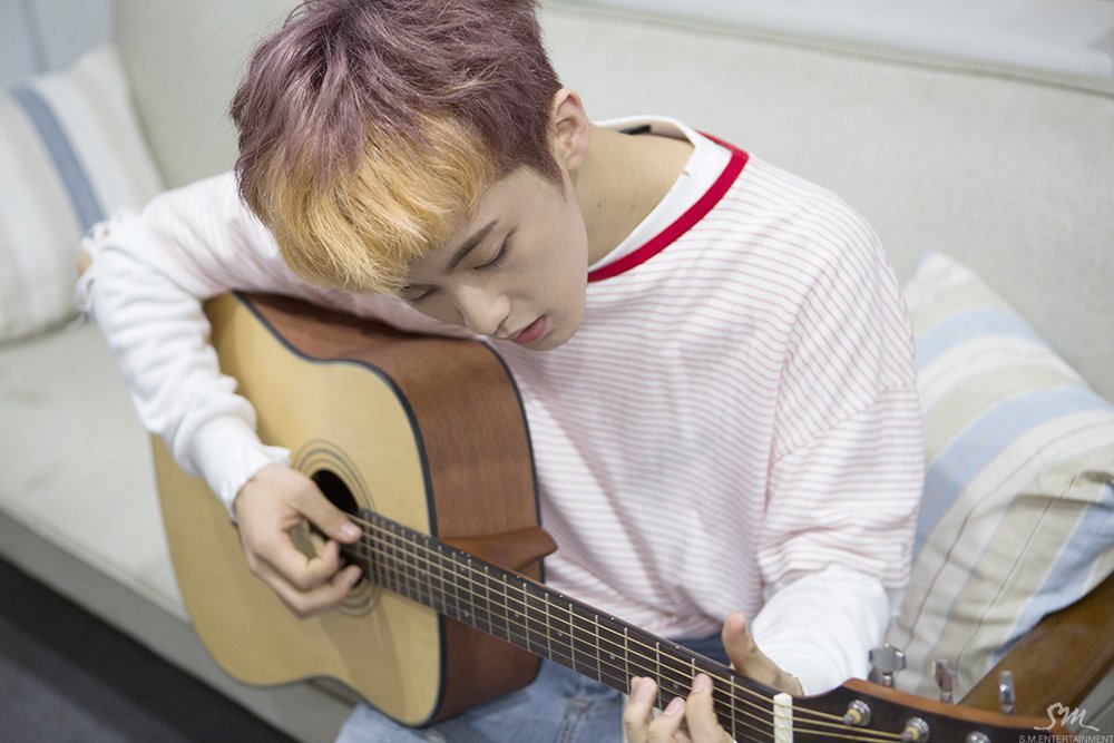 Kecintaan Kim Jaehwan dengan gitar sudah terlihat sejak ikut "Produce", nih. Jaehwan dikabarkan mempunyai belasan koleksi gitar, lho. Bucin banget!