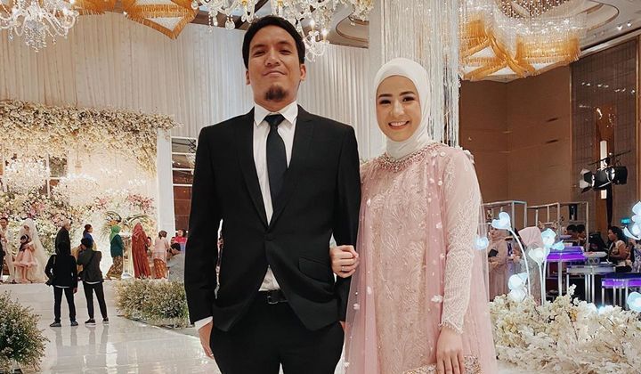 Rona bahagia pun terlihat jelas di wajah Desta maupun Natasha Rizki. Keduanya juga tampak rupawan nan serasi dengan busana pernikahan yang senada.