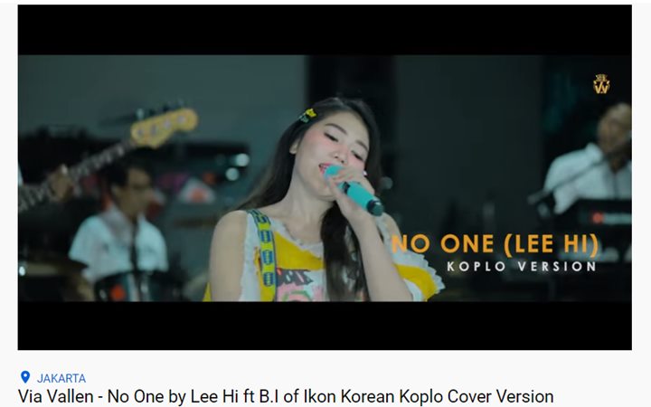 Lagu milik BLACK PINK bukan satu-satunya lagu asal Korea Selatan yang di-cover oleh Via. Pedangdut asal Sidoarjo ini juga pernah membawakan lagu "No One" yang merupakan duet dari Lee Hi dan B.I. Lagu tersebut dibawakan bersama dengan band dangdut dengan versi koplo. Cek "No One" versi Via di sini, ya.