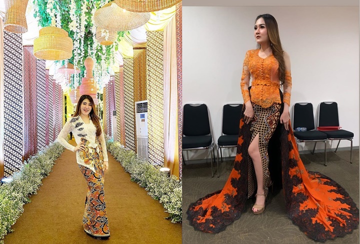 7. Via Tampil Anggun dengan Kebaya, Kalau Nella Lebih Berani dengan Belahan Rok Tinggi