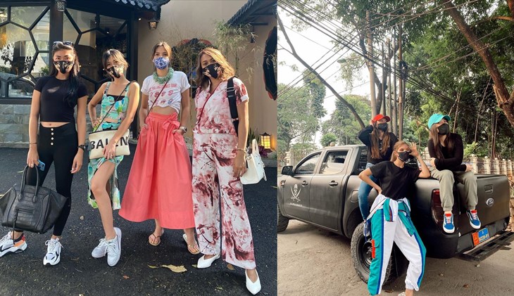 7. Geng Nia Ramadhani Pilih Outfit Penuh Warna, Sedang Geng Marsha Aruan Lebih Swag dengan Hitam