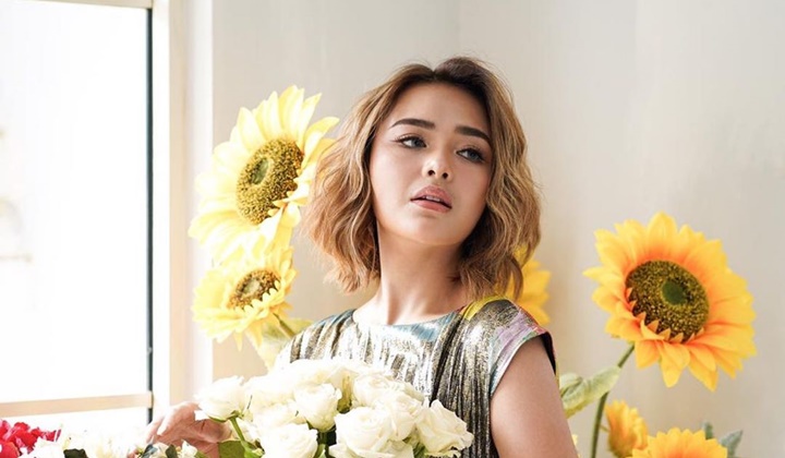 Amanda sendiri tampil memesona dengan riasan bold bernuansa gelap. Ia juga tampil beda dengan rambut super pendek yang terlihat basah.