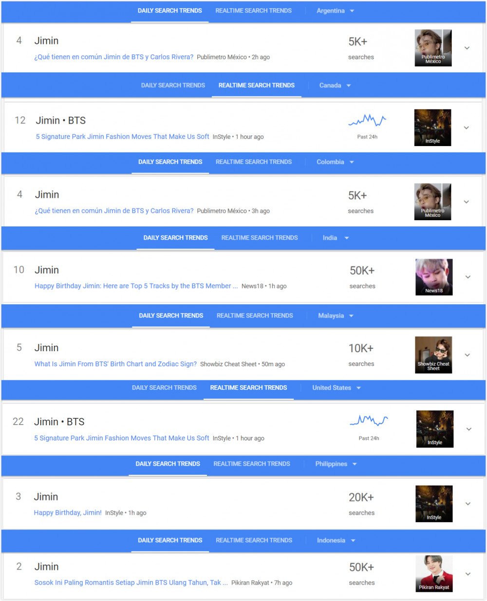 Sedangkan di Korea, Jimin menjadi orang pertama dan satu-satunya yang mendominasi 24 tren secara bersamaan. Sebuah forum publik Korea dipenuhi dengan ucapan selamat ulang tahun dan cinta untuk kebanggaan bangsanya. Jimin yang paling rendah hati ini tentu saja tidak membiarkan upaya para anggota dan penggemarnya diabaikan. Sebagai tanggapan, Jimin memposting pesan terima kasihnya untuk semua ucapan selamat ulang tahun dan pesan dengan dua selca tampan. Jimin meninggalkan janji untuk melihat para penggemar melalui aplikasi Vlive untuk siaran langsung yang pasti membuat semua orang bersemangat.