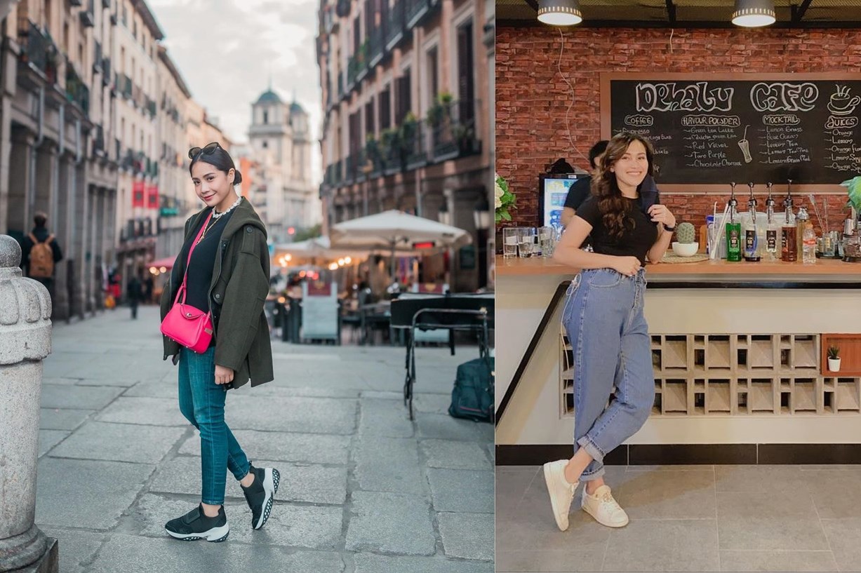 Meski sama-sama mengenakan kaos hitam dipadukan celana jeans, Nagita dan Ayu memiliki gaya berbeda. Nagita memilih sempurnakan gayanya dengan sepatu hitam, sedang Ayu sneakers putih.