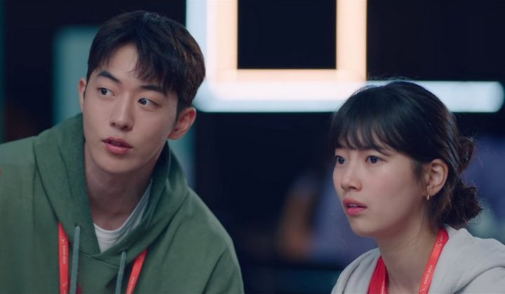 Dalam potongan gambar drama 'Start-Up' yang dirilis Nam Do San (Nam Joo Hyuk) dan Seo Dal Mi (Suzy) saling bertukar pandangan di atas atap gedung saat matahari terbenam.