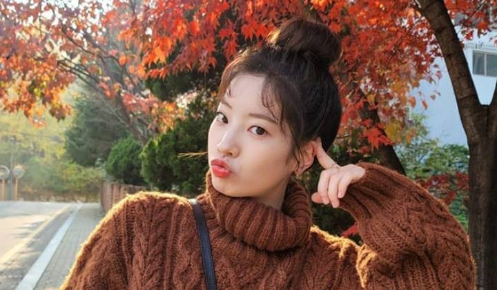 Tak hanya itu, Dahyun pun mengunggah momen di kala dirinya sedang berada di bawah pohon berdaun oranye. Dengan mengenakan sweater coklat, idol tersebut terlihat bahagia dan tersenyum cerah ke arah kamera. Perpaduan estetik antara wajah cerah Dahyun dan pemandangan musim gugur ini pun membuat para penggemar terpesona.
